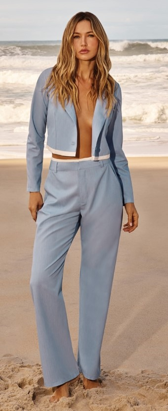 A peça que redefine a alfaiataria de verão: leve, fluida e em uma cor que é sinônimo de frescor. Ideal para looks elegantes e cheios de personalidade.