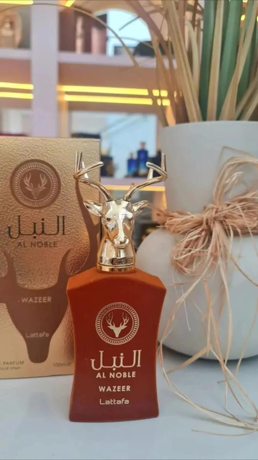 Wazeer de Lattafa Perfumes é um perfume Compartilhável. As notas de topo são: Hortelã, Laranja, Junípero ou zimbro e Bergamota. As notas de coração são: Chocolate, Caramelo, Pera, Íris e Framboesa. As notas de fundo são: Sândalo, Âmbar, Cedro, Almíscar, Vetiver e Baunilha.